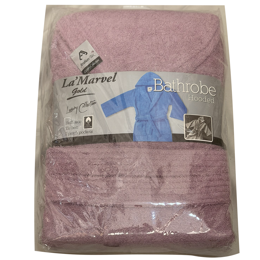 A classic, oversized hooded silhouette. The hood is a key feature, designed to help dry wet hair and provide extra warmth around the neck and head.